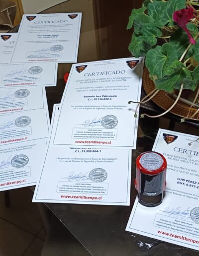 Tambien Reconocido y Autorizado como Instructor de Defensa Personal ante la Ley de Artes Marciales N⁰ 18.356 y la Ley 3.607 en Relación a Seguridad Privada, por el Ministerio de Defensa Nacional, Dirección General de Movilización Nacional y el Departameto de Seguridad OS-10 de Carabineros de Chile. para hacer clases de Defensa Personal a Personal Seguridad Privada como Guardias de Seguridad (GG.SS.) Policías y Personal de las Fuerzas Armadas de Chile y a civiles.